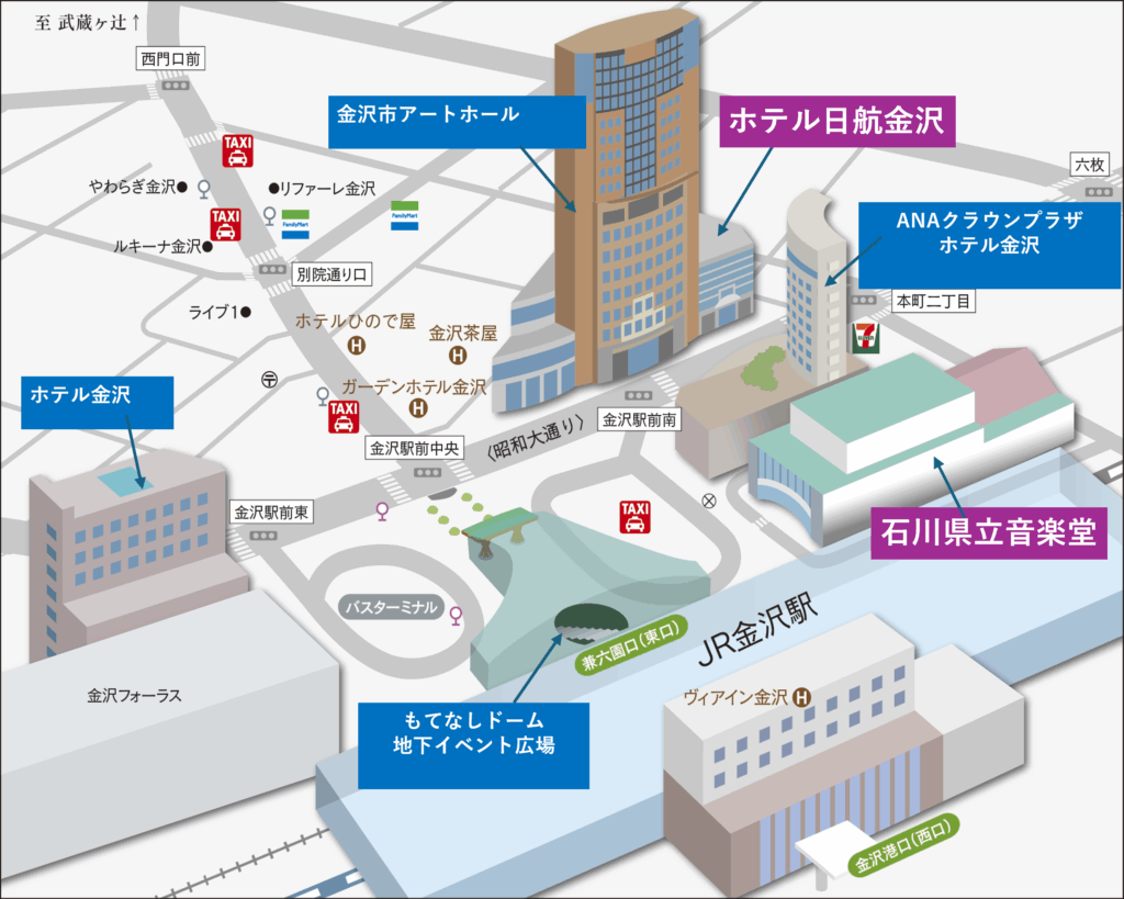 - ・飛行機利用 ※小松空港-金沢駅 リムジンバスをご利用ください。詳しくはこちらをご確認ください